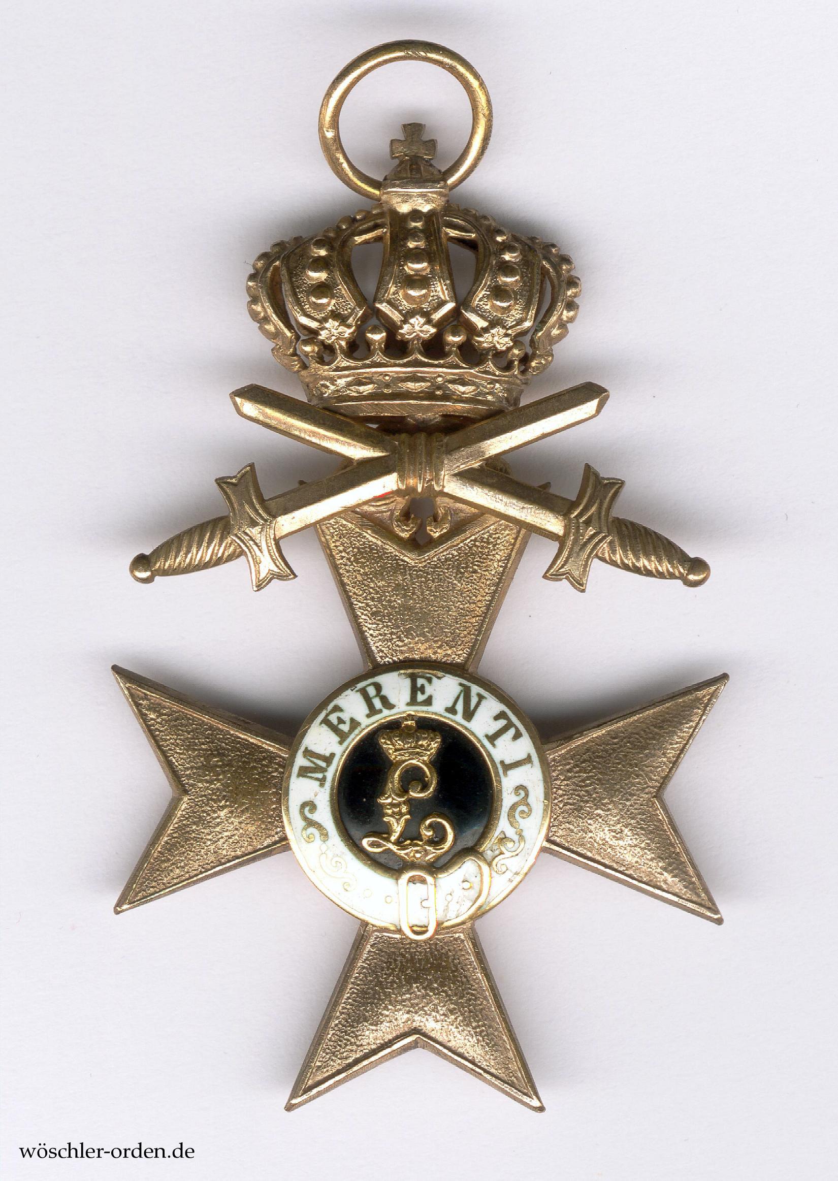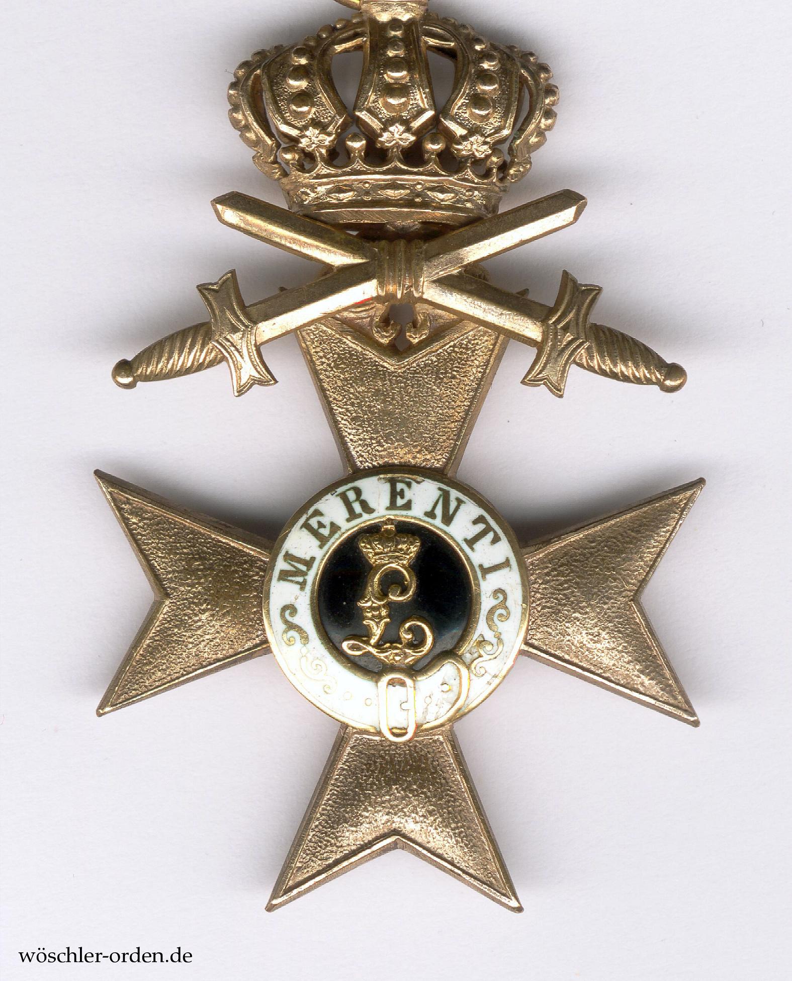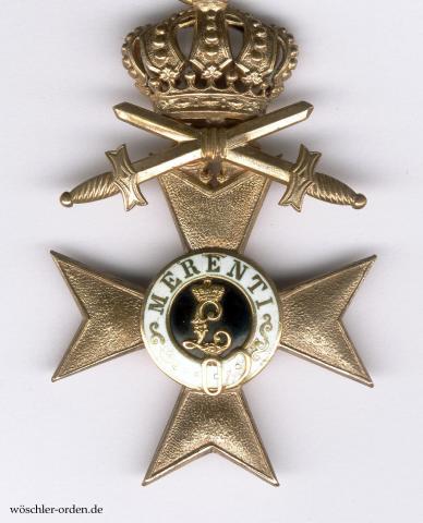 Das Militär-Verdienstkreuz wurde 1866 durch König Ludwig II. zusammen mit dem Militär-Verdienstorden als diesem affiliiertes Ehrenzeichen in ursprünglich einer Klasse gestiftet. Schwerter wurden erst 1891 nachgestiftet, durften jedoch von denen, die die Auszeichnung im Kriege erhalten hatten, nachträglich angelegt werden. Im Jahr 1905 wurde das Militär-Verdienstkreuz erstmals umgestaltet und zweiklassig, 1913 schließlich dreiklassig bzw. sechsstufig. Außerdem wurden unterschiedliche Bänder für Kreuze mit oder ohne Schwerter eingeführt. Nach Angaben von Bernd Döbel, Königswinter, wurden im bzw. für den Weltkrieg insgesamt lediglich 146 MVK 1. Klasse mit der Krone und Schwertern verliehen, davon nur acht (!) am regulärem Kriegsband.