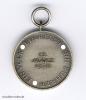 Buntmetall geprägt, versilbert und patiniert, an angelöteter Ringöse mit offenem Bandring. Naturgemäß ohne eine ersichtliche Herstellerpunzierung, dürfte bzw. könnte es sich, aufgrund der Erwerbumstände, dennoch um eine Zweitfertigung („Schnallenstück“) aus der Fertigung der Firma Wilhelm Deumer, Lüdenscheid, handeln.