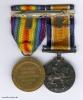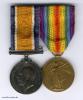 Die Siegesmedaille in der einsprachigen (Standard-) Ausgabe für Briten und Angehörige des Empire. Beide Medaillen verliehene Originale, auf dem Rand jeweils „241968 PTE. W. G. HYAMS. THE QUEENS R.“ eingeschlagen, womit es sich um die Auszeichnungen des Private Hyams aus dem Regiment der Königin („The Queen’s Regiment“) handelt.